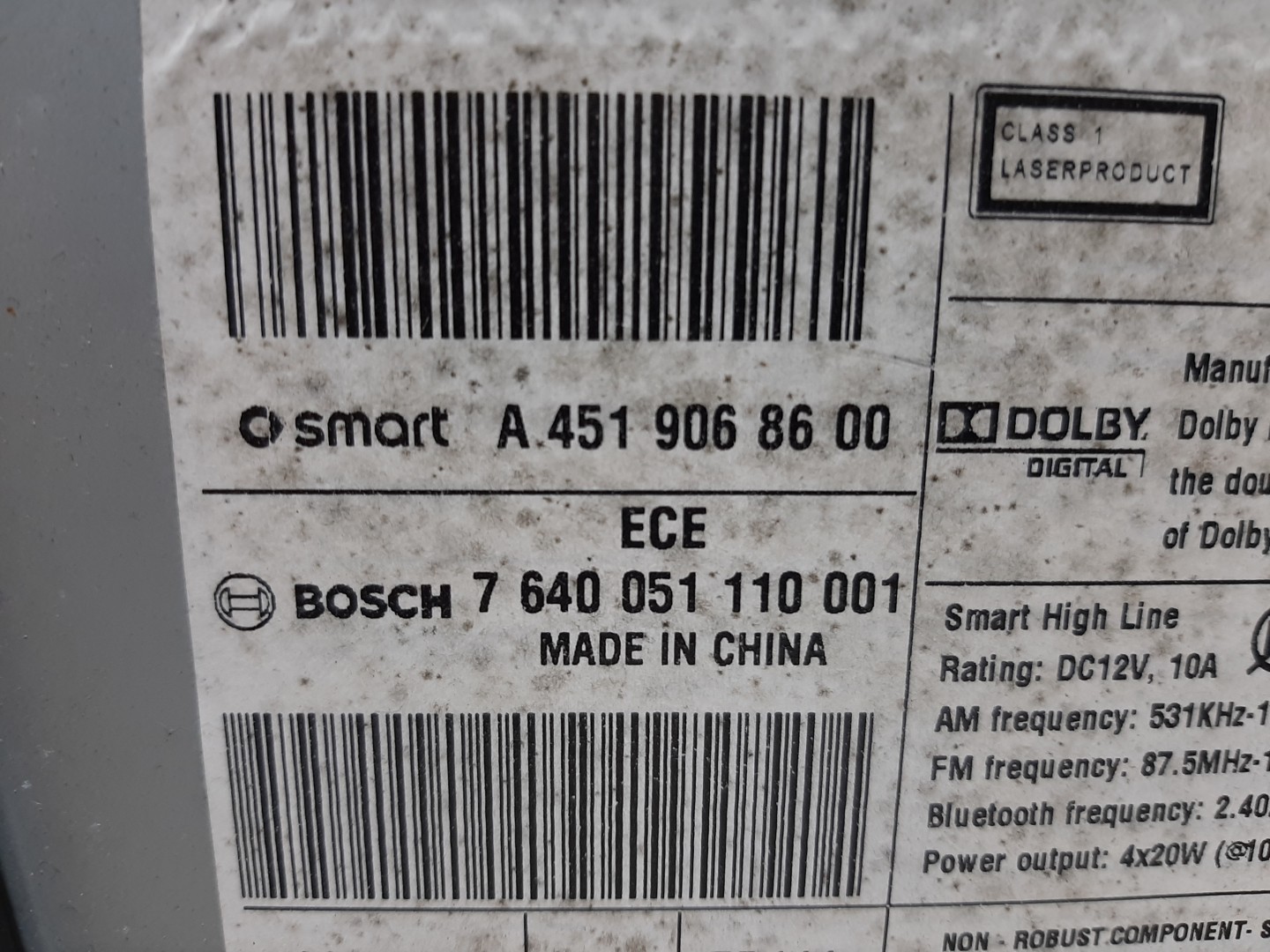 Autoradio SMART FORTWO Cabrio (451) [2007] A4519068600